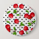 Badge Rond 10 Cm Pois Rockabilly Cherries en blanc