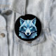 Badge Rond 10 Cm Tête de loup géométrique bleue