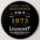Né 1973, 50e anniversaire ajoutez votre nom badge / bouton. Modifiez le nom et l'année avec le modèle fourni. Un magnifique design d'anniversaire noir sur mesure. Plus de cadeaux et de fournitures de fête disponibles avec le design "légendaire" dans le magasin.