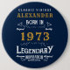 Né 1973, 50e anniversaire ajoutez votre nom badge / bouton. Modifiez le nom et l'année avec le modèle fourni. Un magnifique design d'anniversaire bleu sur mesure. Plus de cadeaux et de fournitures de fête disponibles avec le design "légendaire" dans le magasin.