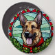 Badge Rond 15,2 Cm Berger allemand en verre tendu Noël