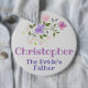 Présentation du père de la mariée - un badge avec le nom et une illustration florale. badge d'identification du mariage.