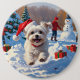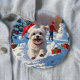 Badge Rond 15,2 Cm Chien maltais courant dans la neige avec Casquette