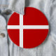 Le drapeau rouge et blanc du Danemark, ou Dannebrog, a une croix nordique ou scandinave. Le rouge est le fond, la croix est en blanc. Le drapeau danois est représenté ici sur un bouton rond.