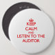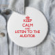 Badge Rond 15,2 Cm Gardez le calme et écoutez le commissaire aux