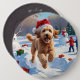 Badge Rond 15,2 Cm Goldendoodle Courir en neige avec Casquette de Noë