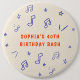 Boutons de fête d'anniversaire des 40 ans amusants et fantaisistes avec des illustrations ludiques de notes de musique et d'étoiles. Un ajout parfait pour une soirée piano de célébration !