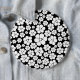 Badge Rond 15,2 Cm Motif Fleur rétro en blanc sur noir