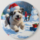 Badge Rond 15,2 Cm Old English Sheepdog Running in Snow Christmas Cas