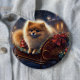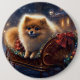 Badge Rond 15,2 Cm Saison de Noël Poméranienne brossé