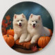 Badge Rond 15,2 Cm Samoyed Chiot Automne Citrouille de plaisir