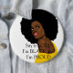 That afro says it all. She's a queen among queens and she knows it. Her colorful queen garb and over-stated red lips, say no less. She'll stand out when you pin this button anywhere.
