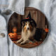 Badge Rond 15,2 Cm Shetland Sheepdog Citrouille Halloween effrayant