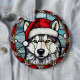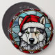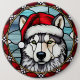 Badge Rond 15,2 Cm Sibérien Husky Vitrail Noël