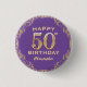 50e Anniversaire Parties scintillant violet et or Bouton cadre de fête. Pour plus de personnalisation, cliquez sur le bouton "Customiser" et utilisez notre outil de conception pour modifier ce modèle.