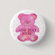 Badge Rond 2,50 Cm Bébé mignon Ours En Rose Texte Personnalisé