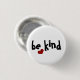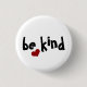 Ce bouton comporte le texte ' be kind' en gras noir et un petit coeur rouge. Le texte peut être personnalisé.