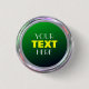 Passez le bouton plaqué en métal pour le texte, le logo ou l'image. cercle Vert-noir. Modèle avec trois gisements des textes.