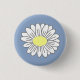 Bouton bleu avec illustration de fleur marguerite aux couleurs pastel (Leucanthemum vulgare) pour les amateurs de fleurs ! La marguerite est la fleur de naissance d'avril et elle symbolise la gentillesse, la pureté, l'innocence, la joie et la joie.