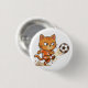Bouton rond avec une épingle, mettant en vedette un chat orange frappant un ballon de football avec une expression intense. Un bouton amusant et sportif pour les sacs à dos, les vestes ou les vêtements décontractés.