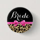 Bouton nommé d'étiquette de jeune mariée pour la future mariée à la partie de bachelorette ou à la douche nuptiale. L'empreinte de léopard frais de safari d'animal sauvage avec l'arc rose au néon chaud lumineux vibrant et le ruban a imprimé dessus. Belle fille girly féminine féminine avec un talent pour la mode et le style moderne.