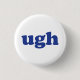 Bouton épinglette blanche en lettres bleues "Ugh"