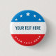 Rouge, blanc et bleu avec texte modifiable. Montrez votre soutien ou faites une déclaration en gras avec ce bouton patriotique personnalisable avec un design classique rouge, blanc et bleu avec des étoiles et des champs de texte modifiables. Parfait pour les campagnes politiques, les évènements patriotiques, les rassemblements ou les célébrations, ce bouton vous permet de le personnaliser avec votre nom, slogan ou message. Qu'il s'agisse de promouvoir un candidat ou de commémorer le Jour de l'Indépendance, ce bouton est un accessoire exceptionnel au style américain intemporel.