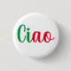 Ciao - salutation en italien en vert, blanc rouge .Il est livré avec douce, féminine, police de look manuscrite . Portez ce bouton rond pour une réunion de famille italienne, une fête du patrimoine ou pour la Journée mondiale Bonjour - Novembre 21.