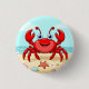 Badge Rond 2,50 Cm Crabe rouge caricaturale gai sur une plage avec co
