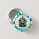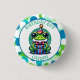 Bouton garçon d'anniversaire mignon. Une adorable grenouille dans un casquette d'anniversaire tenant un cadeau avec un mignon arrière - plan pois en bleu et vert. Modifiez le texte dans la zone de personnalisation.