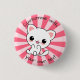 Adorable chatte blanche sur bouton rayé rose personnalisé