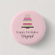 Cet adorable bouton d'anniversaire présente un design de gâteau d'anniversaire retro aux couleurs pastel qui est mon art original et peut adoucir n'importe quelle célébration! J'ai adoré assembler ce gâteau tout comme j'adore cuisiner de vrais gâteaux. Ses teintes douces de rose rose, de chocolat et de crème me laissent en fait désirer un vrai gâteau. Votre personnalisation va dans la typographie rétro stylisée pour un look doux vintage des années 1960. S'il vous plaît, envoyez-moi un message avec toute question ou demande spéciale. Merci pour voir mon art ! — Mary Kunz Goldman, artiste