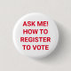 Demandez-moi comment vous inscrire pour voter simple bouton rouge et blanc. Texte rouge personnalisé sur blanc modifiable couleur arrière - plan afin que vous puissiez le personnaliser et le rendre unique. minimaliste style simple et élégant.
