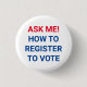 Demandez-moi comment vous inscrire pour voter simple bouton rouge blanc et bleu patriotique inscription des électeurs volontaire. Design sobre et élégant. Texte rouge et bleu sur arrière - plan blanc.
