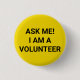 Volunteer, Ask Me I am a Volunteer, noir et jaune simple élégant bouton épingle minimaliste style élégant