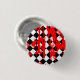 Ce Badge Bouton Emo présente un design graphique noir, blanc et rouge.