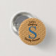Ce bouton comporte un gros monogramme S lettre bleue. Autour de l'initiale de nom de famille est l'année et le nom de famille qui peut facilement et rapidement être personnalisé pour votre événement. L'arrière - plan dispose d'un motif en panier brun clair pour compléter le monogramme de votre famille.