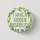 Faites connaître vos besoins grâce à ce badge botanique de JessicaAmber ! Le slogan "I Have a Hidden Disability" (J'ai un handicap caché) est en caractères étroits, entouré d'une couronne verte de feuilles, sur un arrière - plan vert pâle. Vous pouvez modifier le texte au besoin. ⭐ Pour des accessoires de santé mentale et physique plus utiles, visitez mon magasin Zazzle.com/JessicaAmberArtist ⭐ Pour des commandes personnalisées, envoyez-moi un message sur Zazzle