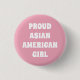 Fier Asiatique Américaine Fille rose et blanc typographie moderne mignonne pin bouton. Texte blanc sur arrière - plan rose. C'est un excellent accessoire pour montrer votre fierté asiatique et célébrer le Mois du patrimoine de l'Asie-Amérique et du Pacifique (AAPI).