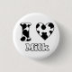 Ik houd van melk bouton. Tekst : I heart milk Afbeelding : in koeien print.