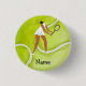Ce bouton amusant et sportif comprend une joueuse de tennis prête à servir un ballon de tennis. Le ballon de tennis est dressé contre un arrière - plan de court de tennis. Parfait pour tous ceux qui aiment le tennis !