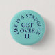 Struggle quote text design in blue reads relife is a Struggle, get over it button pin badge. Idéal for those who are motivating others to overcome adversity in life.