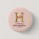 Badge Rond 2,50 Cm Lettre de nom personnalisée H Bouton de roses rose