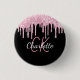 Un fond noir décoré de gouttes de paillettes roses fausses, aspect de peinture qui goutte. Personnalisez et ajoutez un nom, vos initiales de monogramme. Le nom est écrit avec un style de lettrage manuscrit. Parfait comme cadeaux de fête ou étiquettes de nom pour les fêtes d'anniversaire, les enterrements de vie de jeune fille et les soirées de filles.