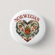 Ce bouton présente un style norvégien de romarage Folk Art Heart design. Au-dessus du coeur est dit norvégien en lettres rouges courbées. Les couleurs sont rouge, bleu, vert et jaune doré.