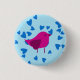 Badge Rond 2,50 Cm Oiseau rose avec les coeurs bleus