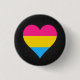 Classic Round Button with heart design in colors of pansexuality; pink, yellow and blue stripes pride flag, rainbow love design