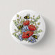 Badge Rond 2,50 Cm Poppy Flowers and Bees Digital Drawing, Botanical
