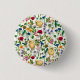 Badge Rond 2,50 Cm Poulets et fleurs sauvages sur blanc cassé