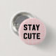 Badge Rond 2,50 Cm Restez mignon/Grille rose